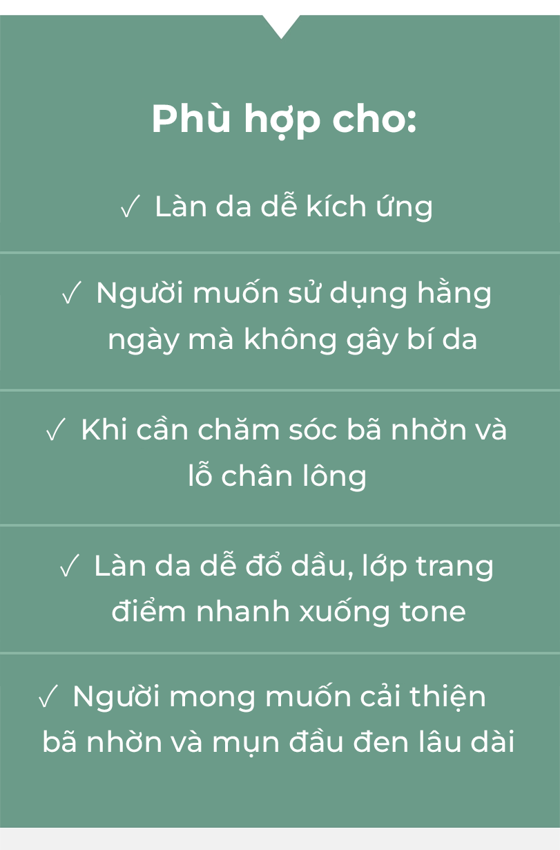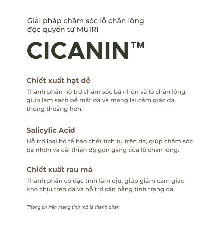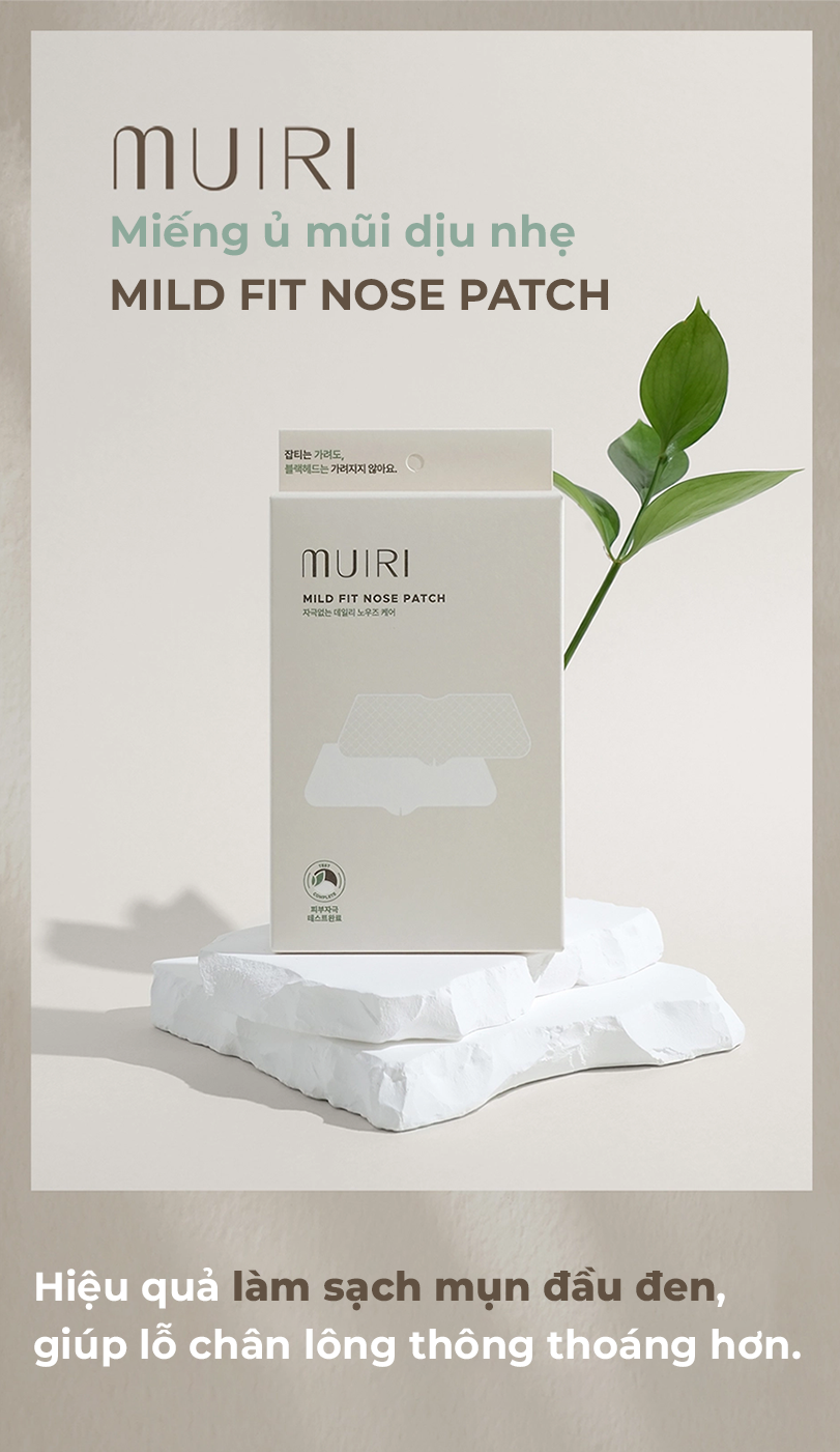 Giải quyết dứt điểm nỗi lo về mụn đầu đen và lỗ chân lông to với mặt nạ mũi MUIRI MILD FIT. Công thức tiên tiến kết hợp LHA+PHA làm sạch sâu cùng phức hợp CICANIN™ độc quyền, chứa sức mạnh từ Chiết xuất Vỏ Hạt Dẻ giúp se khít lỗ chân lông, Xylitol làm mát và Rau Má làm dịu da tức thì. Tất cả được thẩm thấu qua lớp mặt nạ cao cấp, trả lại cho bạn làn da vùng mũi láng mịn và sạch khỏe.