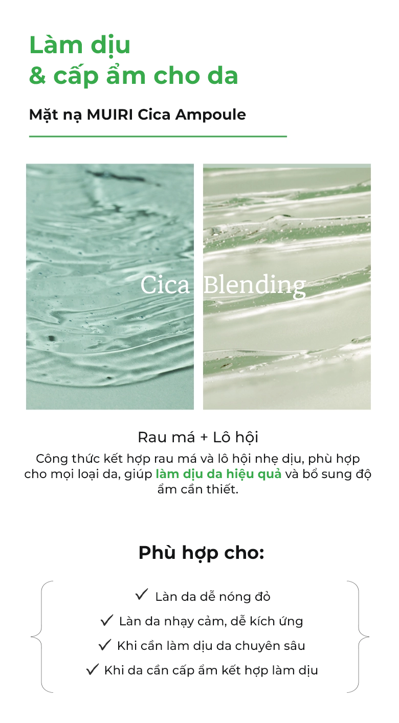 - Chứa Chiết xuất rau má (Centella Asiatica) & Madecassoside