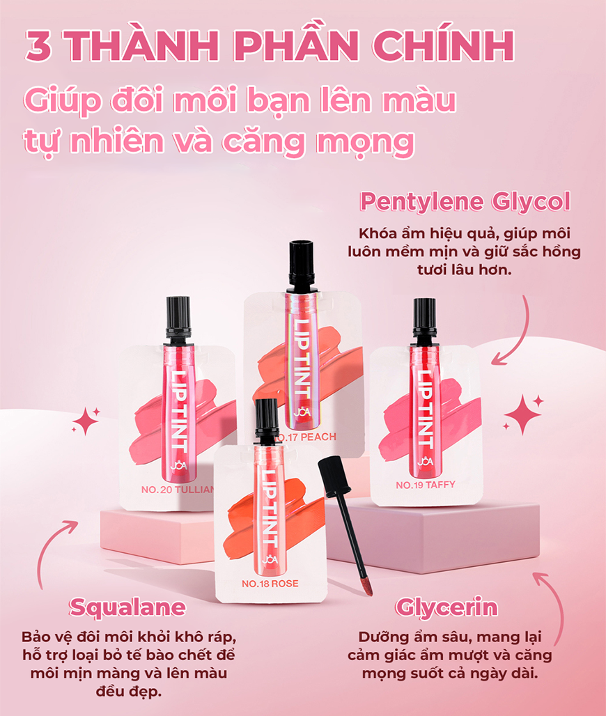 Son tint bóng JOA Waterfil túi 5g - No. 18 Rose Hoa hồng căng mọng