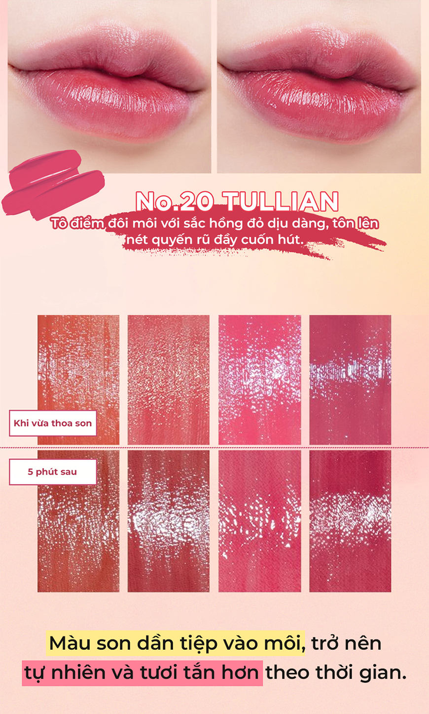 Son tint bóng JOA Waterfil túi 5g - No. 20 Tullian Hồng tím thanh lịch