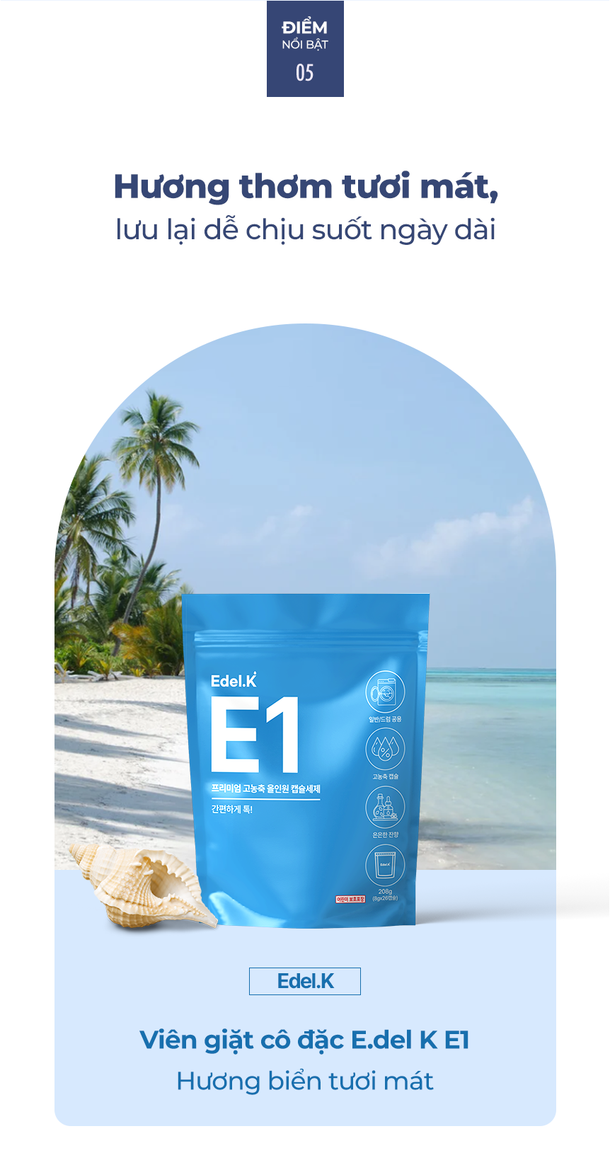 Viên giặt quần áo Edel.K E1 – Hương Biển thơm mát (túi 26 viên)