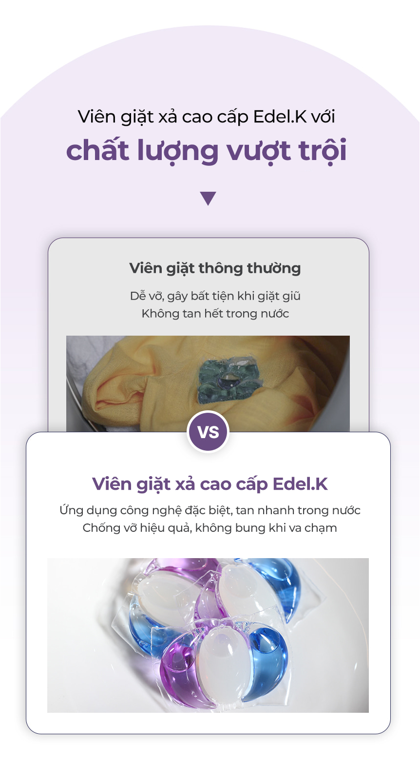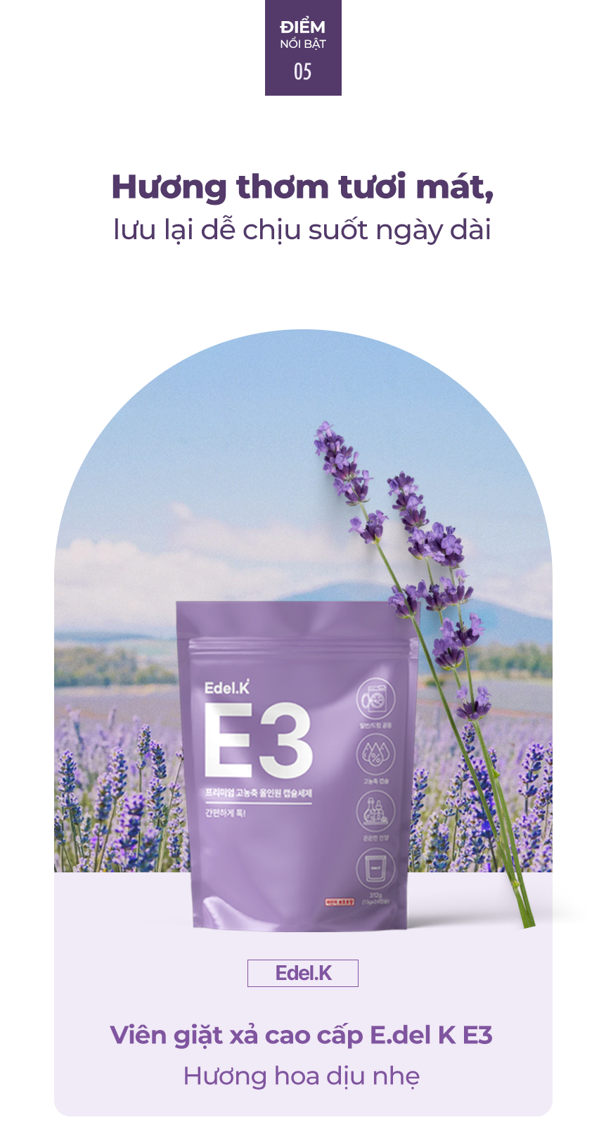 Viên giặt xả quần áo Edel.K E3 – Hương hoa Lavender (túi 24 viên)