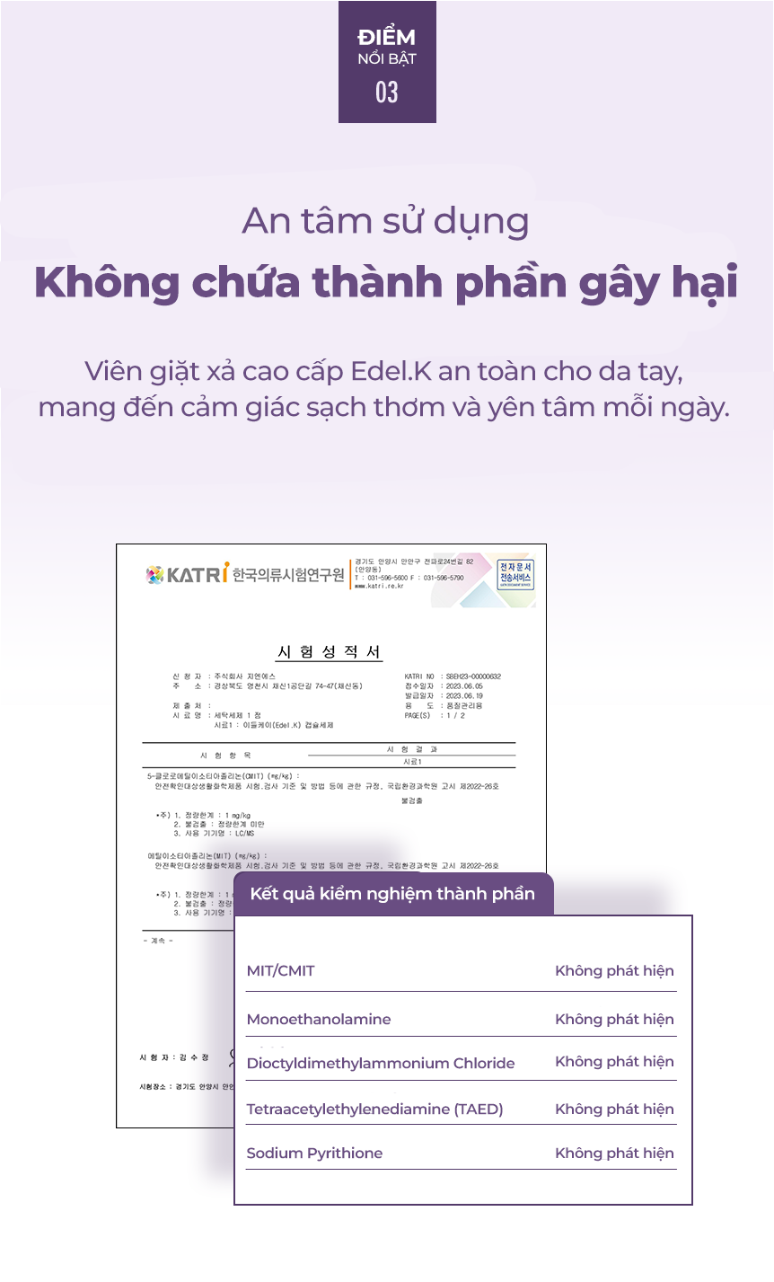 Viên giặt xả Edel.K E3 là giải pháp giặt giũ toàn diện, kết hợp sức mạnh của 7 loại enzyme giúp đánh bật mọi vết bẩn và bảo vệ sợi vải. Vỏ bọc tự tan hoàn hảo trong nước lạnh và công thức an toàn không chứa chất độc hại, mang lại sự tiện lợi và an tâm tối đa cho bạn.