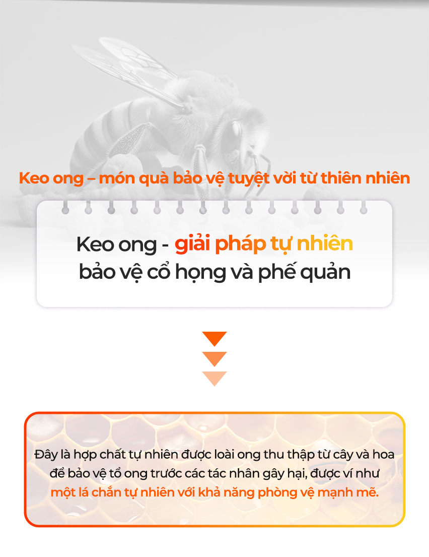 • Chứa 2% keo ong tinh khiết nhập khẩu từ Úc - hàm lượng cao hơn các sản phẩm thông thường.
