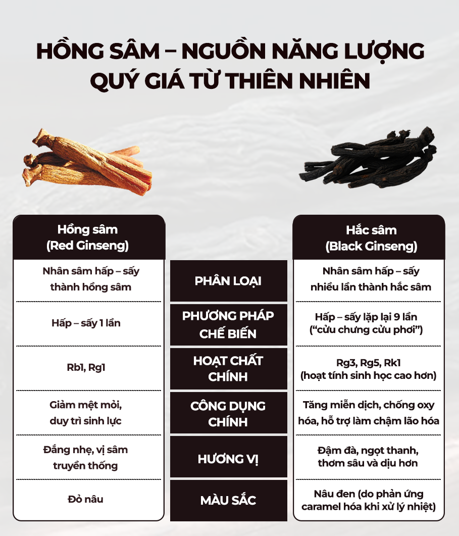 Hương vị hồng sâm đậm và thảo mộc, được chế biến theo phương pháp hấp sấy truyền thống 9 lần.