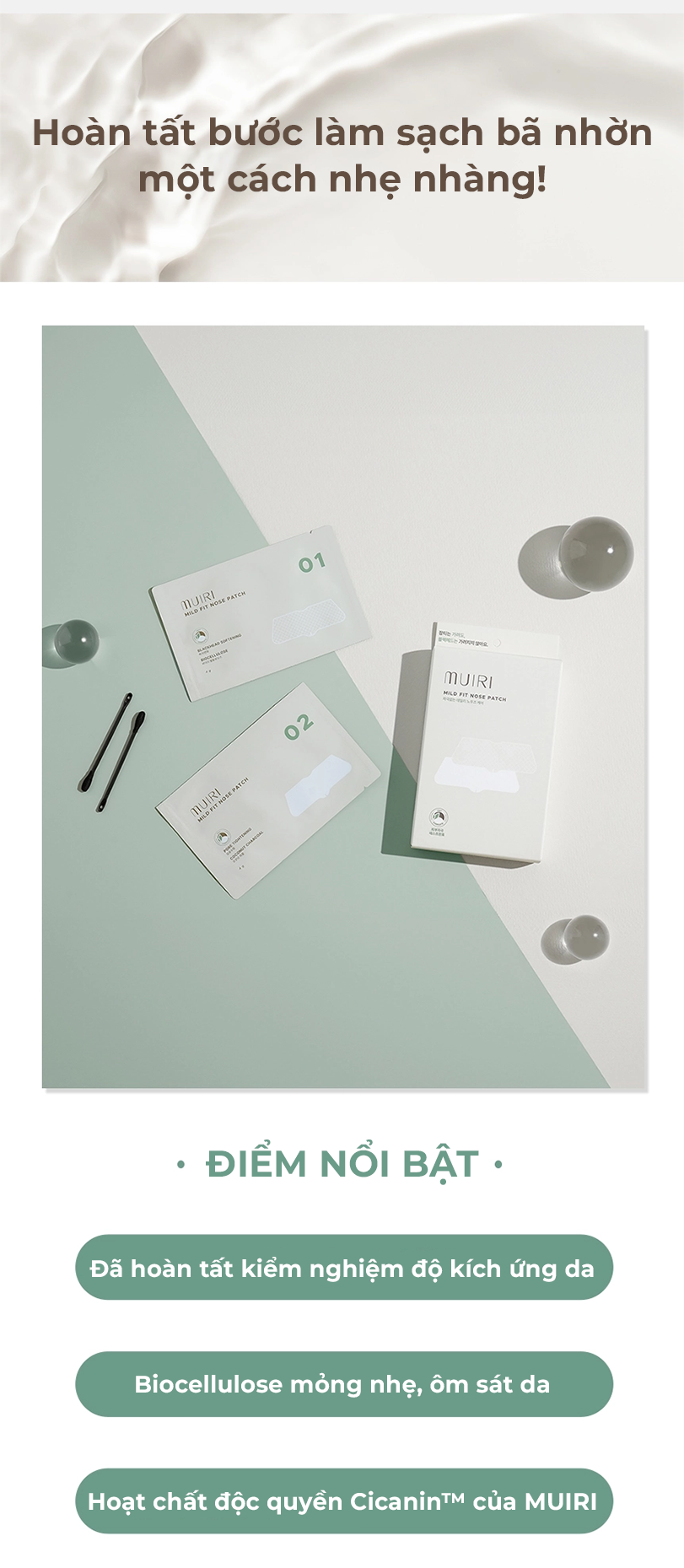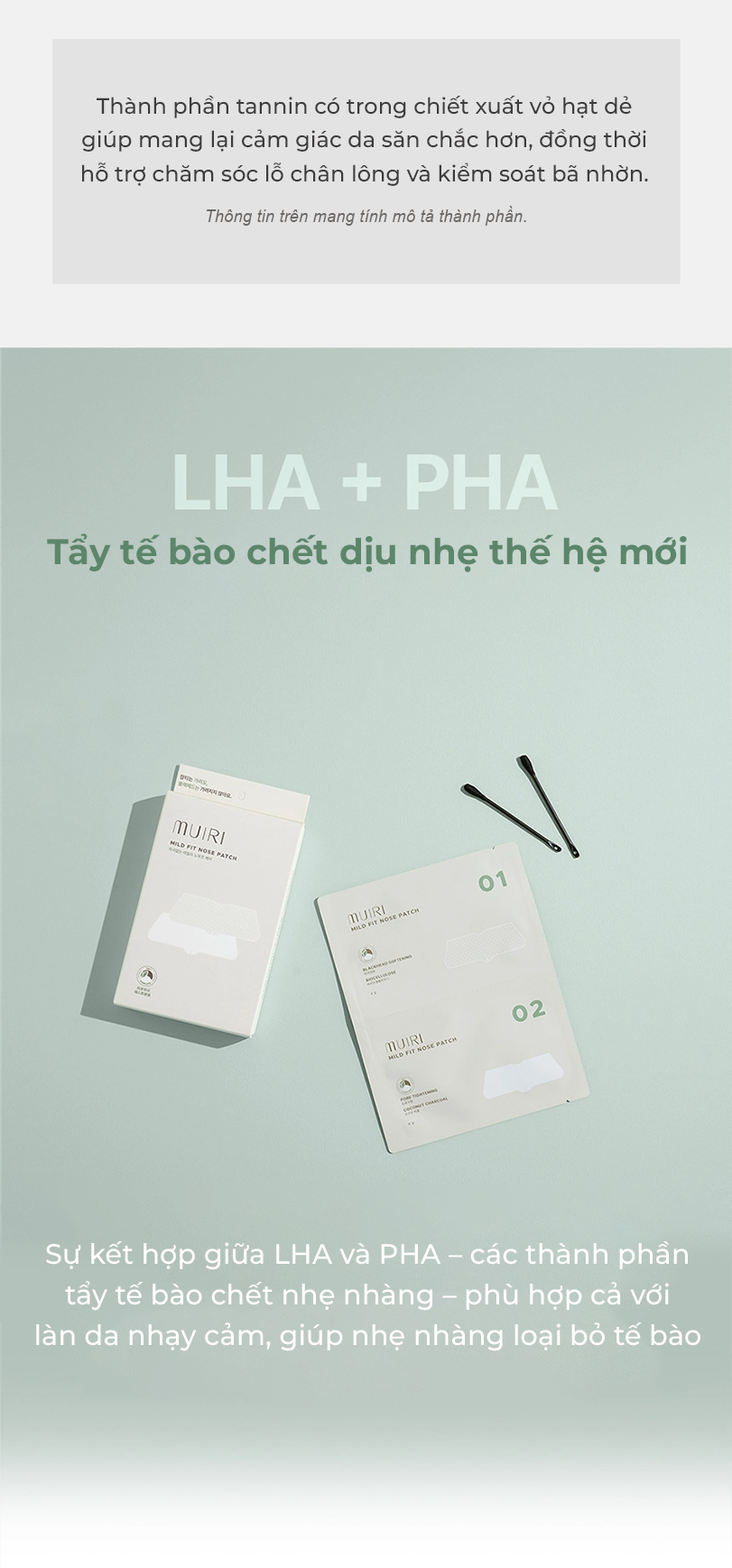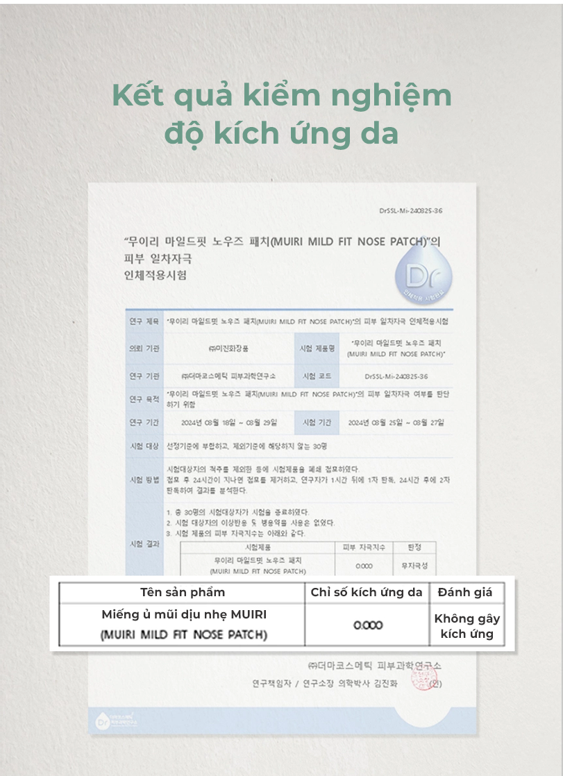 Giải quyết dứt điểm nỗi lo về mụn đầu đen và lỗ chân lông to với mặt nạ mũi MUIRI MILD FIT. Công thức tiên tiến kết hợp LHA+PHA làm sạch sâu cùng phức hợp CICANIN™ độc quyền, chứa sức mạnh từ Chiết xuất Vỏ Hạt Dẻ giúp se khít lỗ chân lông, Xylitol làm mát và Rau Má làm dịu da tức thì. Tất cả được thẩm thấu qua lớp mặt nạ cao cấp, trả lại cho bạn làn da vùng mũi láng mịn và sạch khỏe.