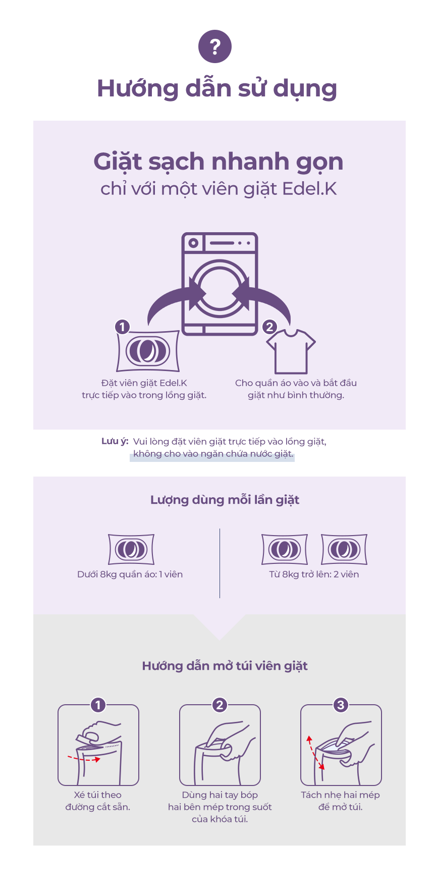Viên giặt xả quần áo Edel.K E3 – Hương hoa Lavender (túi 24 viên)